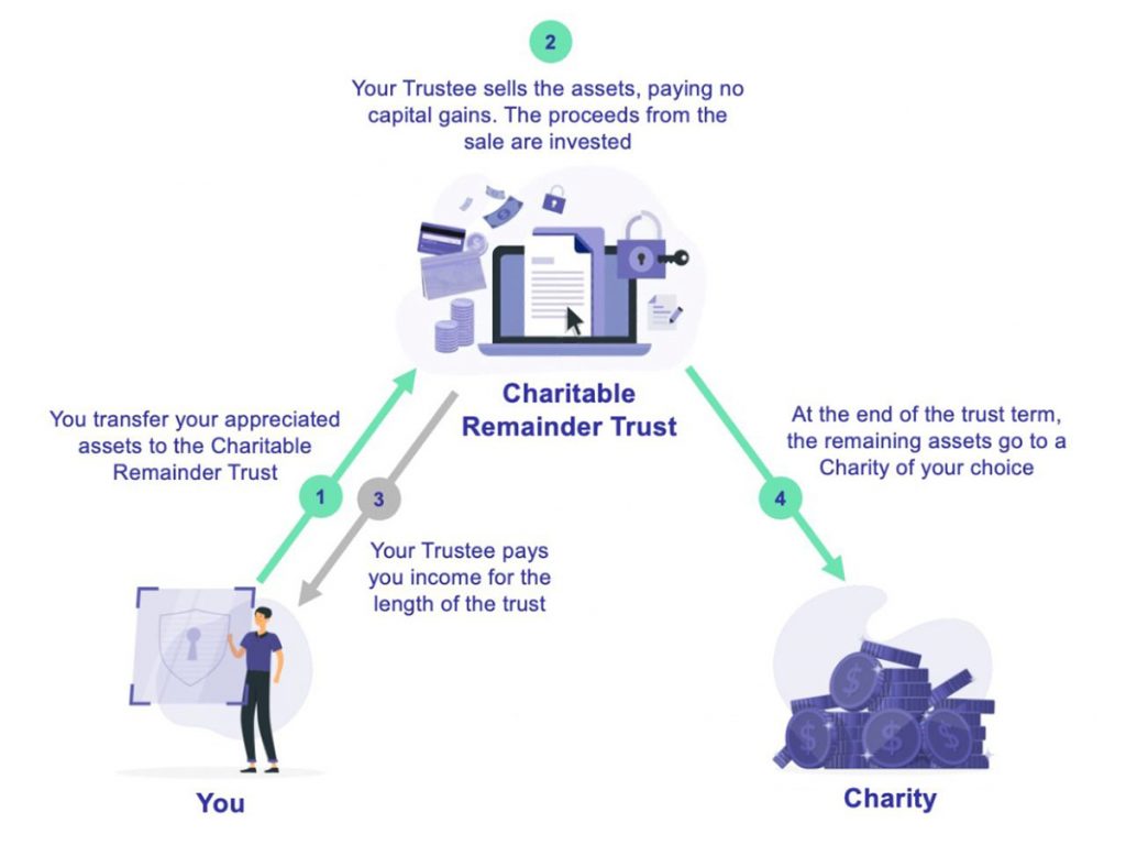 Here’s how a Charitable Remainder Trust works and it’s benefits: